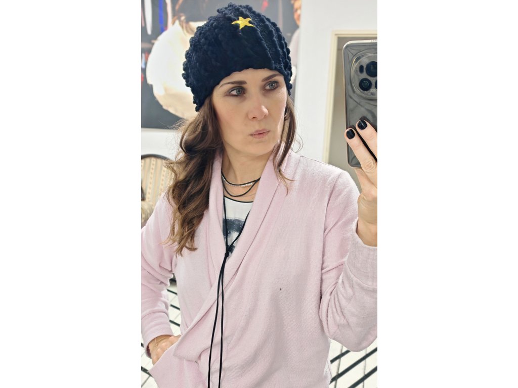 Vrchní díl je pleteninový - pletenina s výraznými puffíky, podšívka je z příjemné černá úpletové viskózy