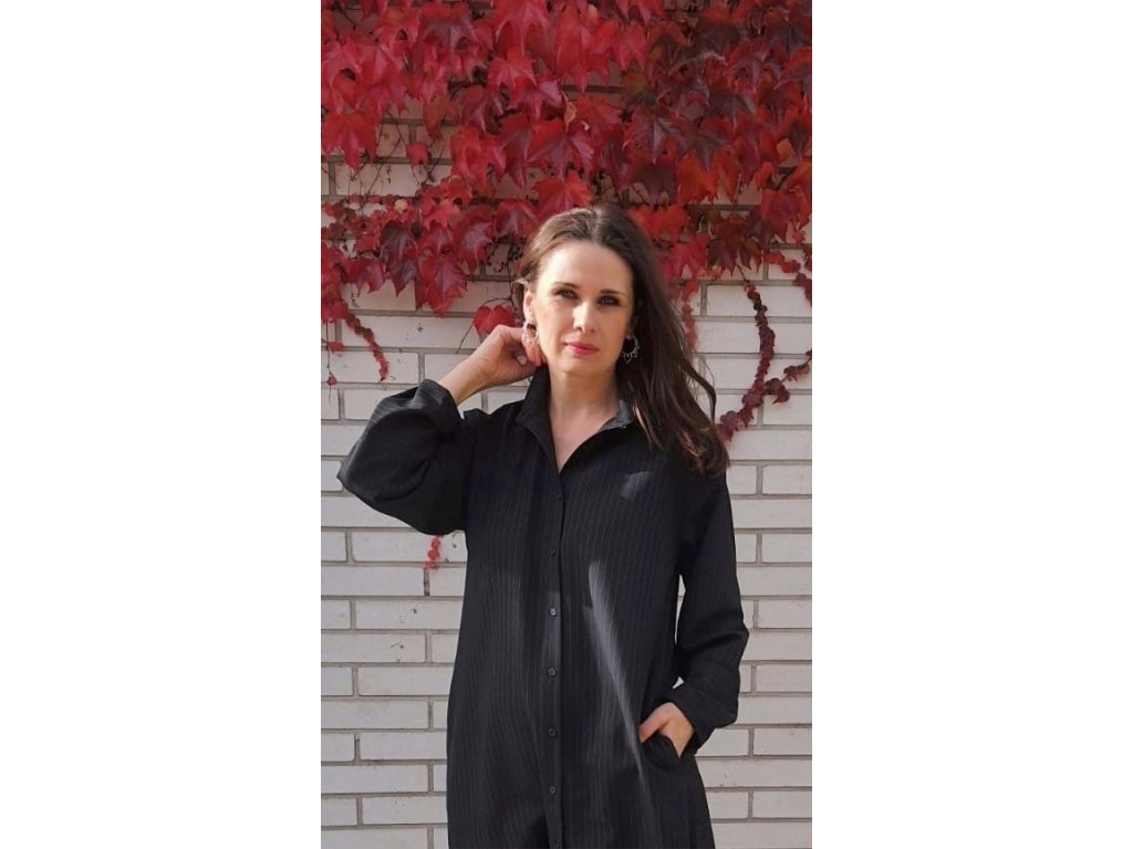 Modelka na fotografii je 175 cm vysoká a nosí velikost M.