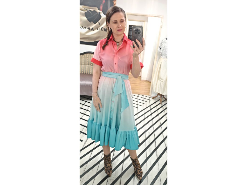 ŠATY - KOŠILOVÉ VOLÁNEM - OMBRE
