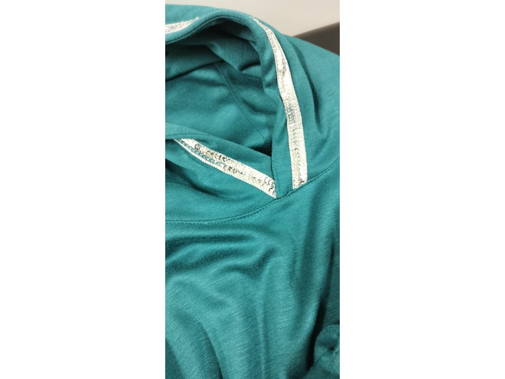 Kapuca je lemovaná stříbrnou bortou s flitry.