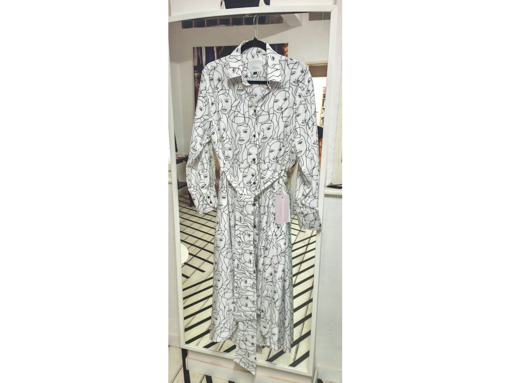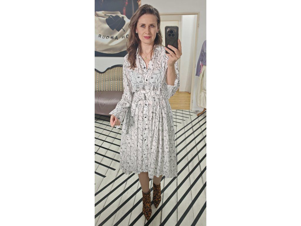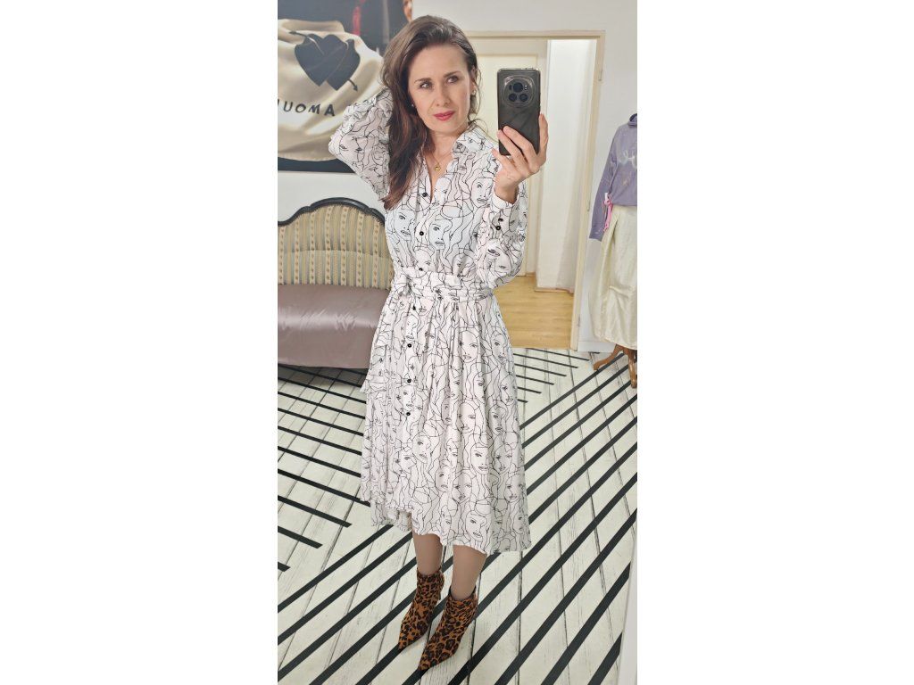 Košilové šaty s ženskou siluetou.