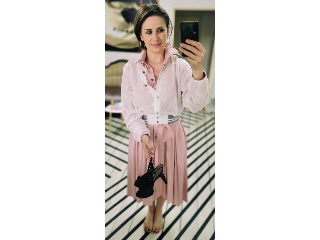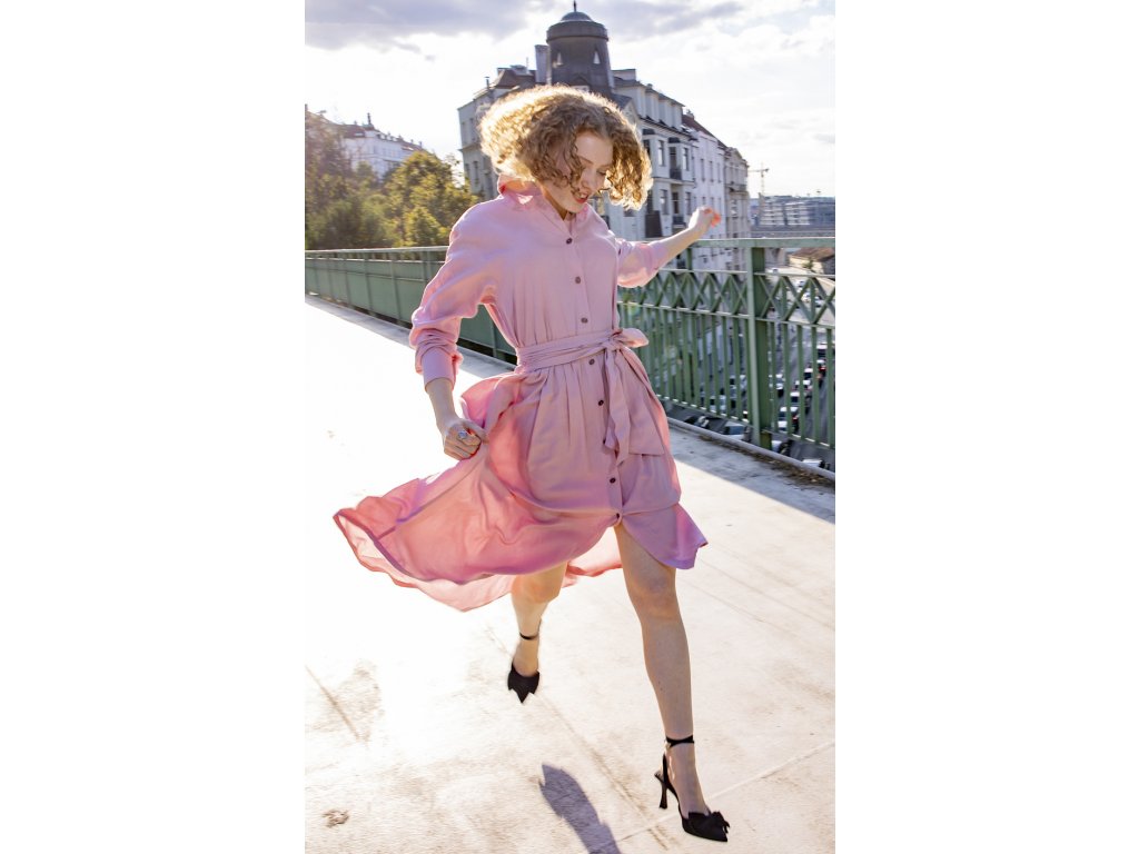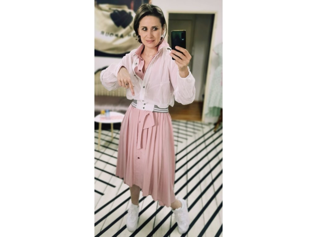 modelka na fotografii je 175 cm vysoká a nosí velikost M