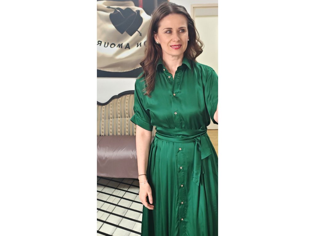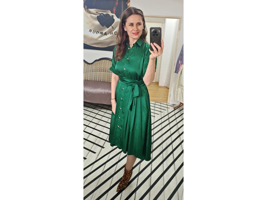Košilové šaty s ženskou siluetou. Lze vrstvit a nosit jako plášť.