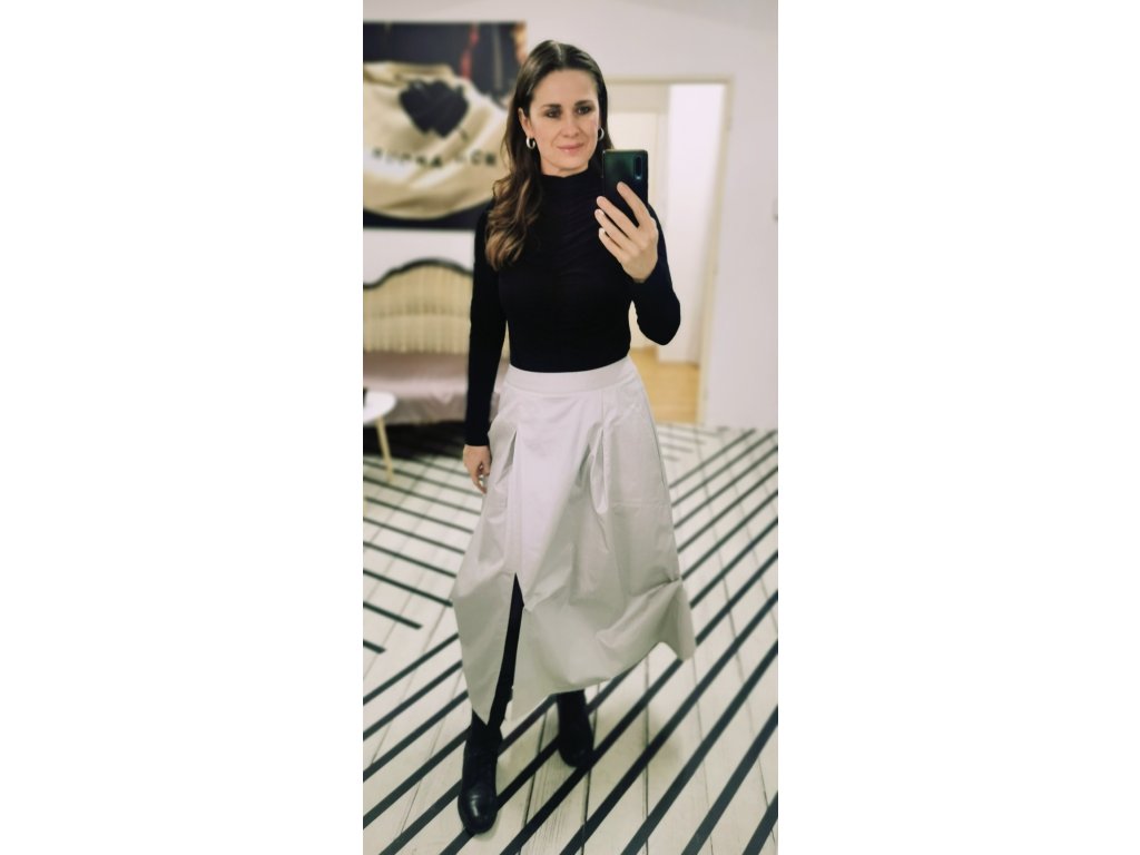 Sukně drží tvar díky materiálu - džínovina s metalickým efektem.