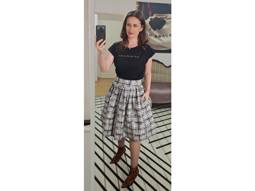 modelka na fotografii je 176 cm vysoká a nosí velikost M