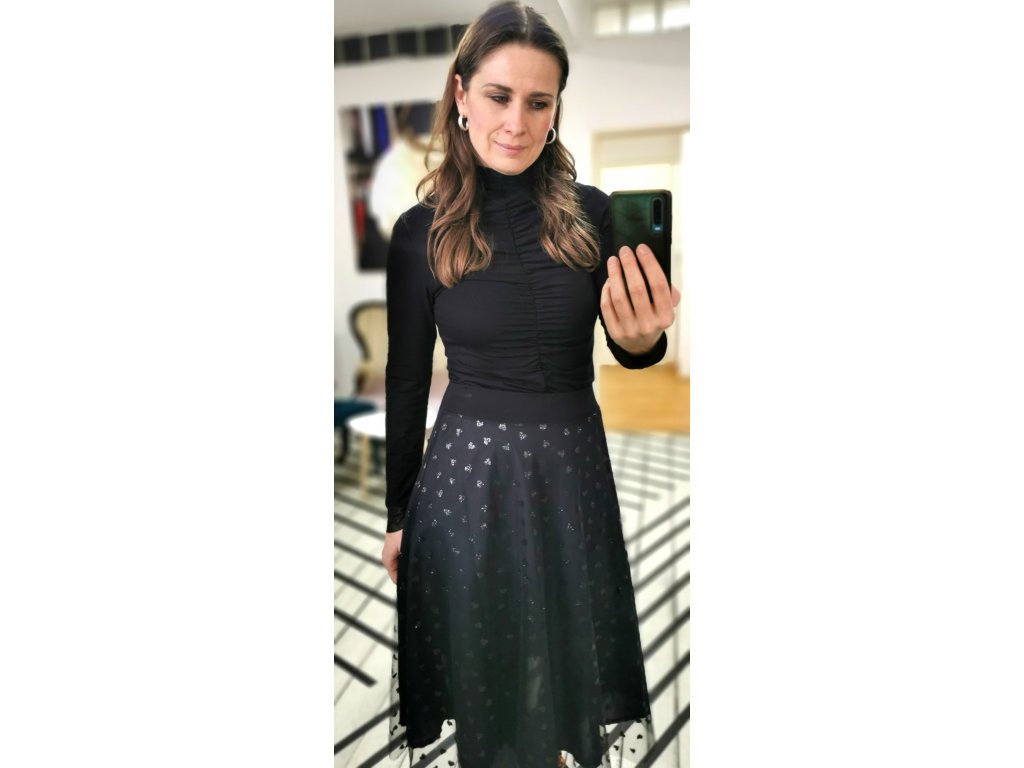 Střih s nabíraným předním dílem. Jednoduchý detail s výrazným efektem.